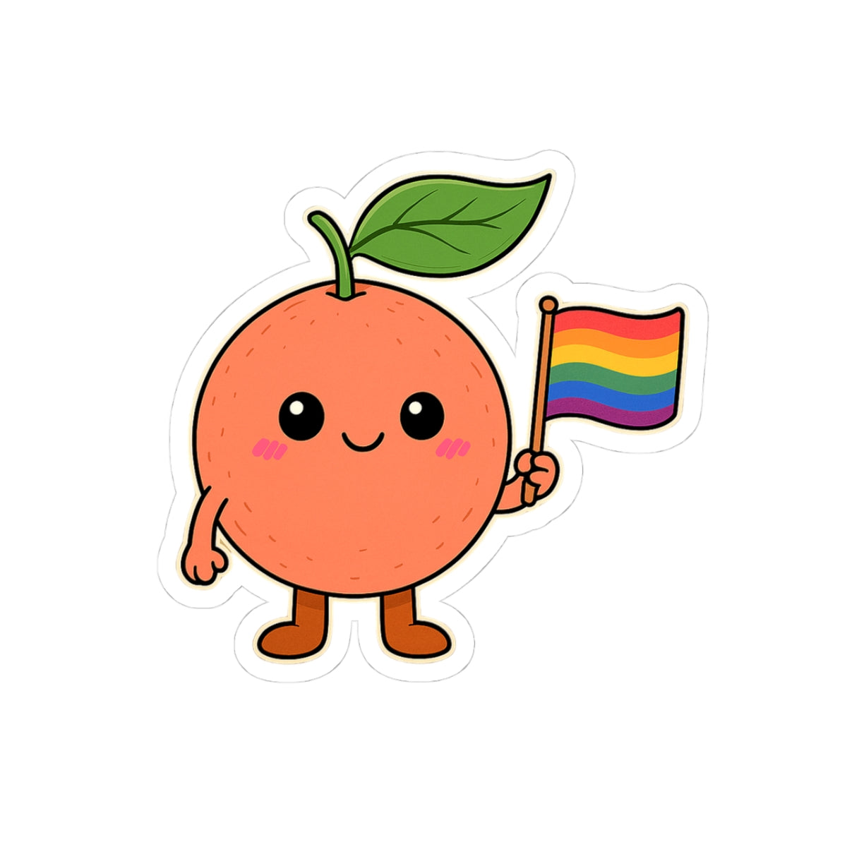 Cute Cartoon LGBTQ+ Grapefruit Sticker – Fun, Colorful, and Proud