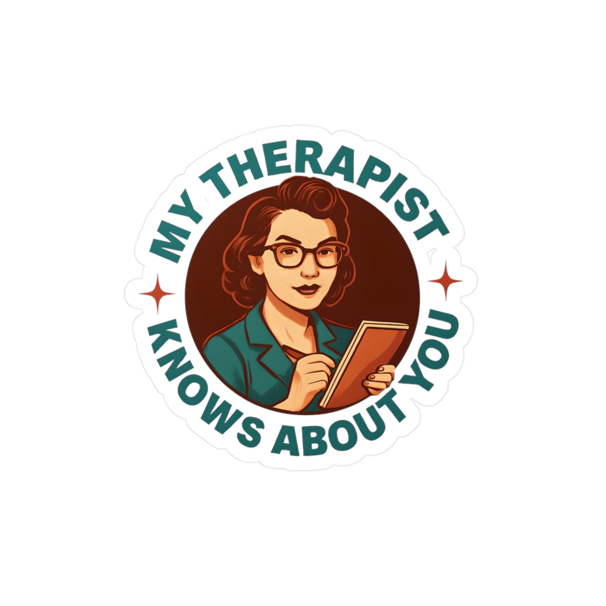 This retro-inspired sticker features a confident, no-nonsense therapist with pen in hand and receipts ready. Perfect for laptops, water bottles, notebooks, or your therapist’s office door, this design is a cheeky nod to healing, boundaries, and maybe that one person who knows what they did.